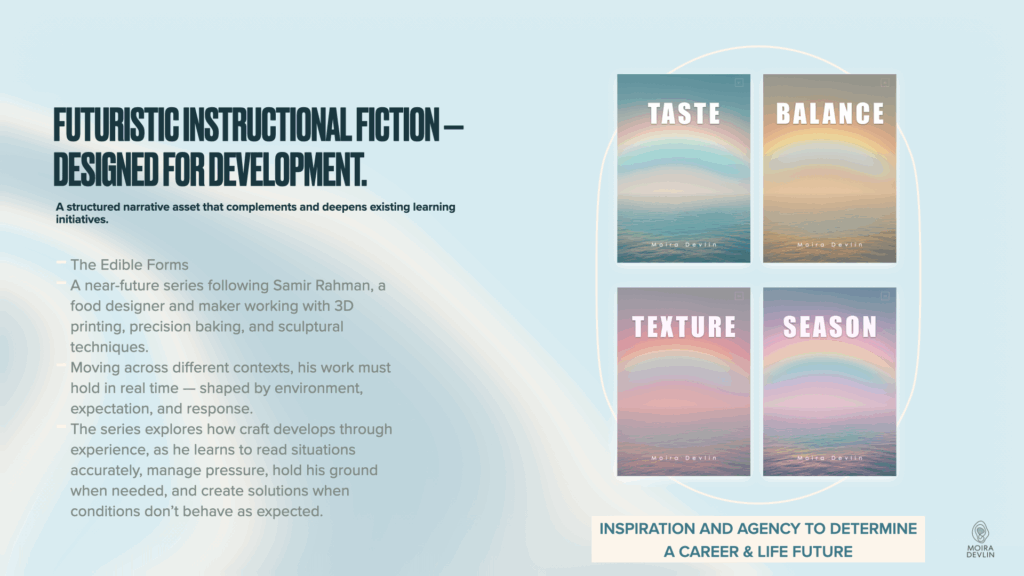 At the heart of the series is Lumi Valen, a fashion designer who moves between organisations and communities at moments of transition. Lumi’s role is never to take over or prescribe solutions, but to help surface what is already present — the tensions people avoid, the choices they postpone, the values they haven’t yet named.