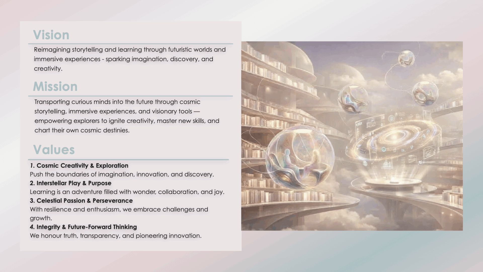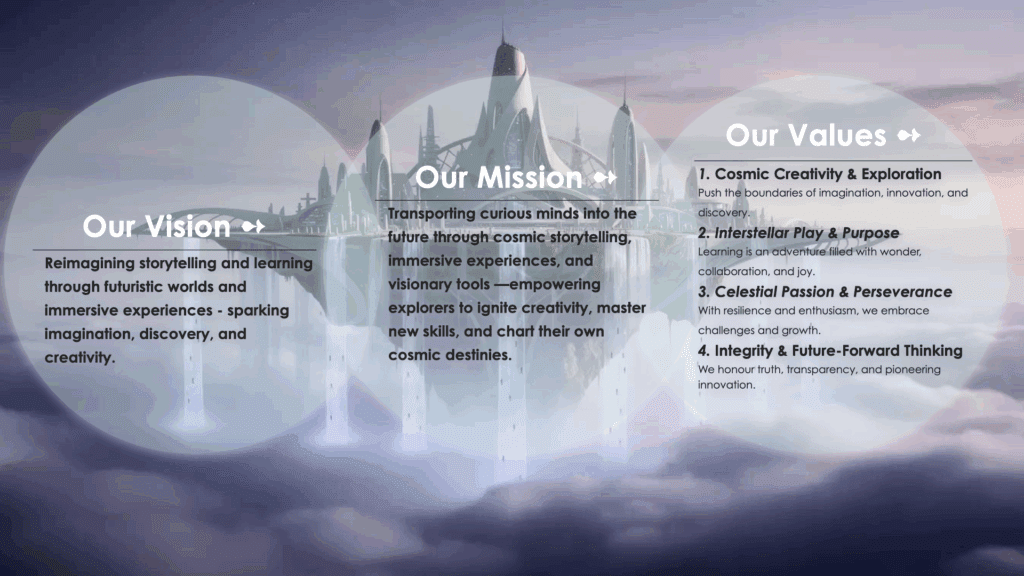 We believe that even the tiniest spark can ignite mighty waves that ripple across the infinite cosmos, shaping the boundless future ahead! Our journey began with a single vision: to revolutionise the learning experience and equip intrepid explorers for the ever-shifting challenges of tomorrow. We’re on a mission to deliver a learning adventure that transcends time and space.